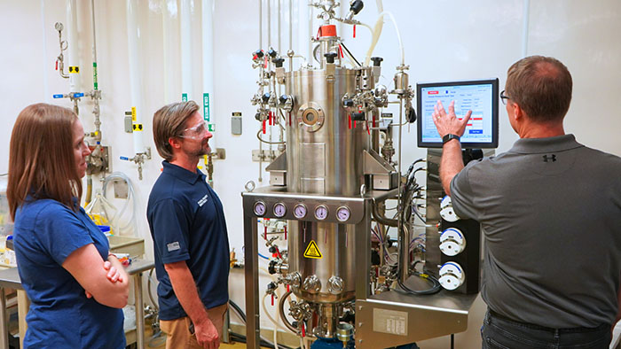 Minter explained that the facility has high-capacity, pilot-level fermentation equipment that allows researchers to fulfill tasks, and the staff are all subject matter experts.
